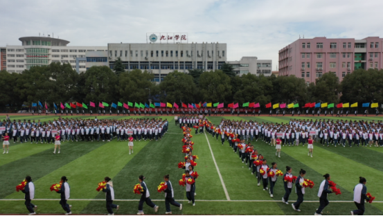 10月24日上午,九江学院主校区南区运动场上,历时两天半的九江学院第十九届校运会圆满落下帷幕。在家校领导赵伟、刘晓东、魏立平、纪岗昌、王万山、陈春生、杨耀防、夏启国、陈小林出席闭幕式,副校长陈小林主持闭幕式,参与运动会的全体师生、各二级学院相关责任人参加闭幕式。