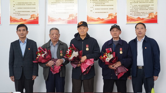 在热烈的掌声中,魏立平为三位参战老同志佩戴上了“中国人民志愿军抗美援朝出国作战70周年”纪念章。