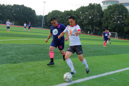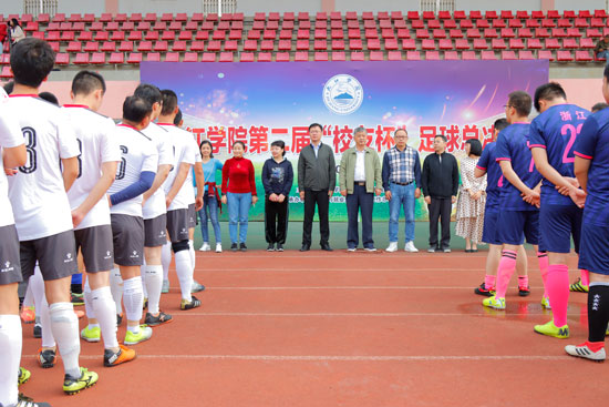 下午三点半,北区田径场立刻沸腾起来。进入决赛的浙江校友联队和广东校友联队在夏启国的带领下进入场地合影留念并相互握手致意,随后夏启国分别为足球赛、篮球赛开球。
