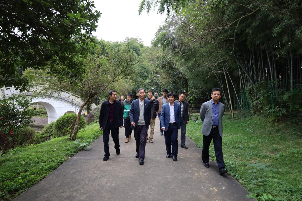 11月4日下午,校党委书记赵伟,校长刘晓东,副校长王万山、杨耀防、陈小林,校党委委员刘遵海一行深入校园实地调研永利yl23411集团官网校园规划修编工作。
