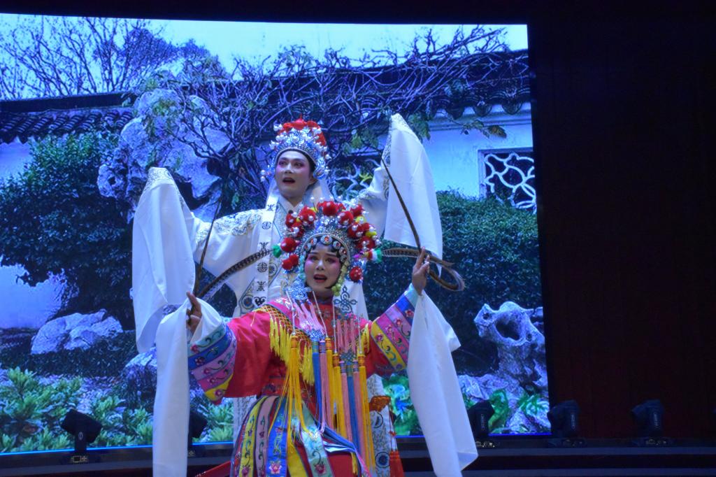 结业仪式结束后,学员还进行了精彩的汇报演出。演出内容有锣鼓演奏,《百花记•百花赠剑》选场、《贵妃醉酒》《金锁记·斩娥》《玉籍记·夜等》等青阳腔传统剧目,青阳腔曲牌《红纳袄》男声表演唱。节目异彩纷呈,让观众领略到了传统青阳腔戏曲艺术的蓬勃生命力,赢得了观众的一致好评,全场掌声不断。