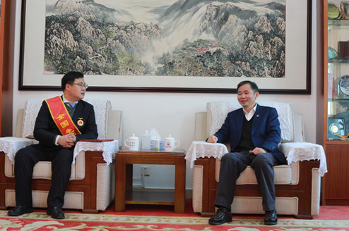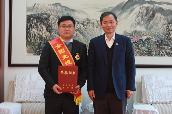 赵伟对谭翊泉荣获全国先进工作者表示祝贺,称赞他为学校争得了荣誉,赞扬他在担任永利yl23411集团官网驻武宁县东山村第一书记及被村民选为村支部书记的八年时间里默默奉献、尽职履责、勇于担当,带领东山村民勤劳致富,把贫困落后的小山村打造成美丽乡村。