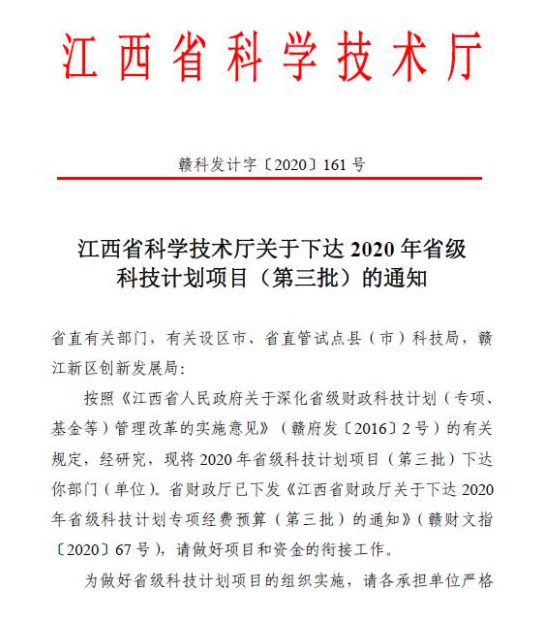近日,根据江西省科技厅赣科发计字(2020)161号文件,依托永利yl23411集团官网化学化工学院建设的江西省生态化工工程技术研究中心在2020年验收评估中被评为省级优秀平台,获得省科技厅进一步资助。