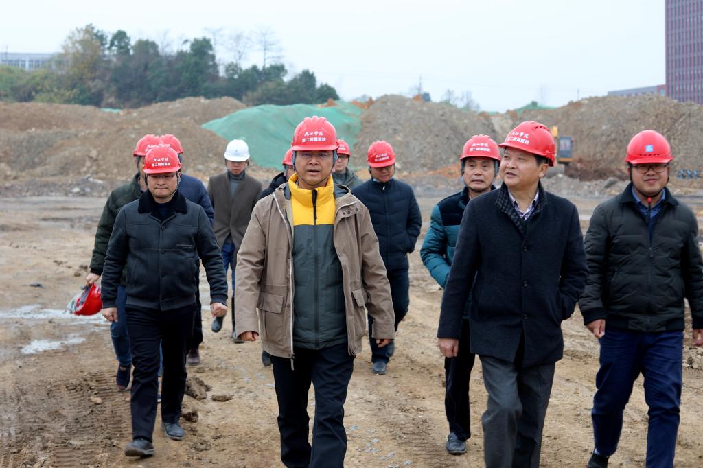 刘晓东校长一行在项目负责人的陪同下深入施工现场实地察看,了解当前项目进展及施工情况。