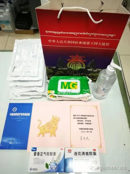 随后,王德鑫一行听取了孔院主要教学点近期工作汇报,并对孔院的工作给予了肯定。王德鑫为教师们发放了“春节包”及慰问物资。教师们纷纷表示,“春节包”装满了祖国亲人对他们的惦记和关怀。“我们将牢记祖国人民的嘱托,不忘初心,不辱使命,继续坚守岗位,为中柬人文交流做出应有的贡献。”