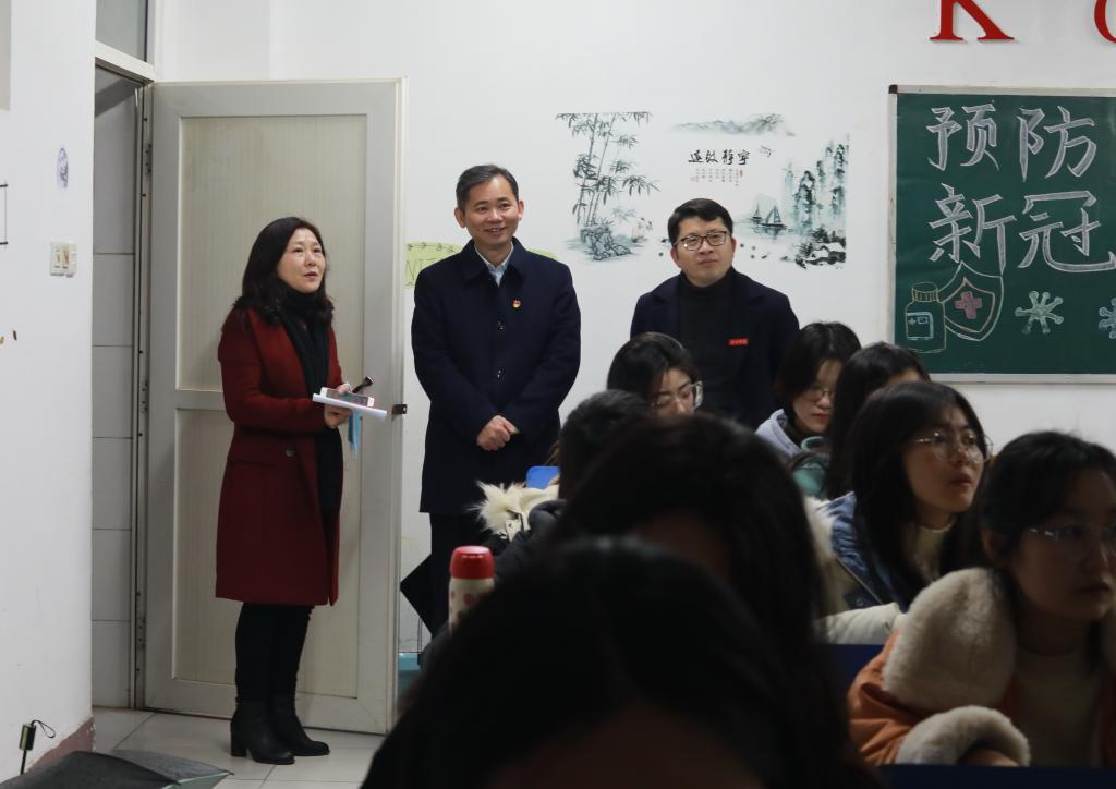 在主校区香远楼,校党委书记赵伟走访了各楼层的教室,学生科、教务科等科室并向上课的老师、同学和工作人员亲切问好。