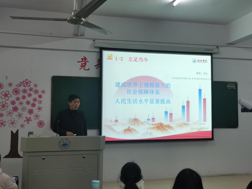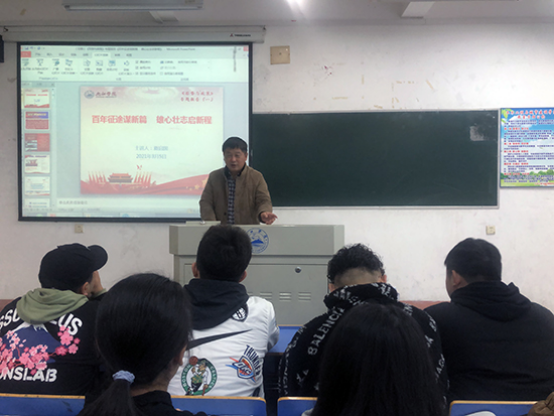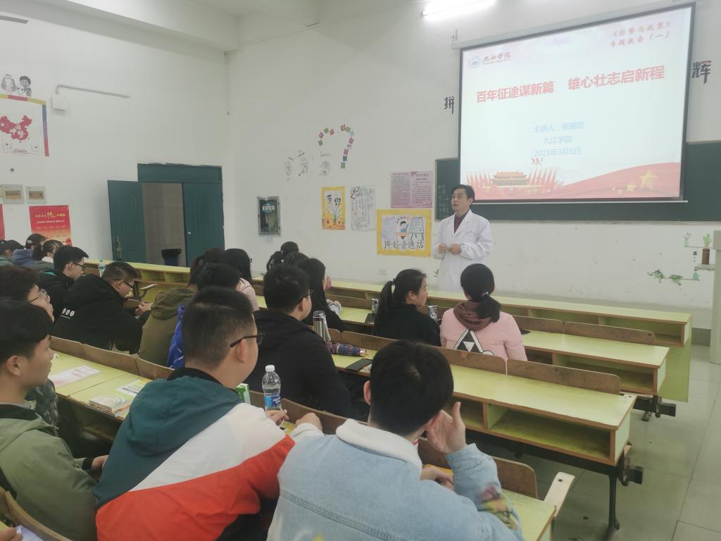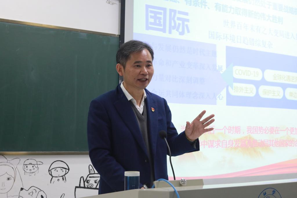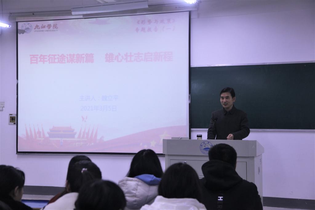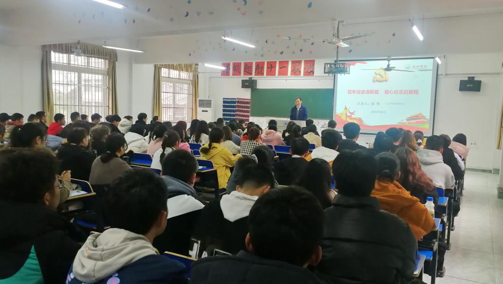 赵伟以《百年征途谋新篇 雄心壮志启新程》为题,开始为学子们讲授思政第一课,他从“胸怀两个大局,把脉发展阶段”、“肩负历史使命,擘画宏伟蓝图”、“保持战略定力,勠力同心前行”和“勇担时代重任,绽放青春年华”四个方面,结合自身的生活求学经历、井冈山革命斗争、新冠肺炎疫情防控、习近平总书记2019年在江西考察情况、国家脱贫攻坚大会、国际国内时事和学校改革发展展望等事例为同学们上了一堂生动的形势与政策课。90分钟的讲述中,他旁征博引、娓娓道来,通过大量的图片,展示了新中国波澜壮阔的锦绣画卷和历史性跨越。