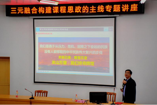 1日下午,校党委副书记魏立平到场与教师代表们一起聆听了《三元融合构建课程思政的主线》讲座。讲座由校党委委员、宣传部部长冯健主持。