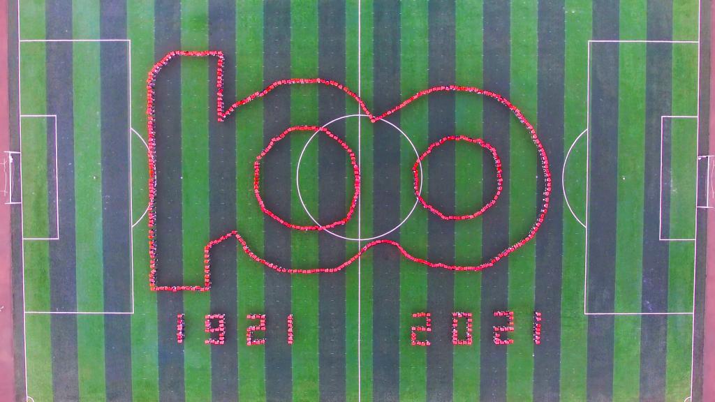 党的光辉照我心,百年风华正青春。绿茵场上,朝气蓬勃的青年迅速集合,依次散开,有序排列,用整齐的队列和“青春万岁!中国共产党万岁”的欢呼表达对党的热爱,对青春的礼赞。