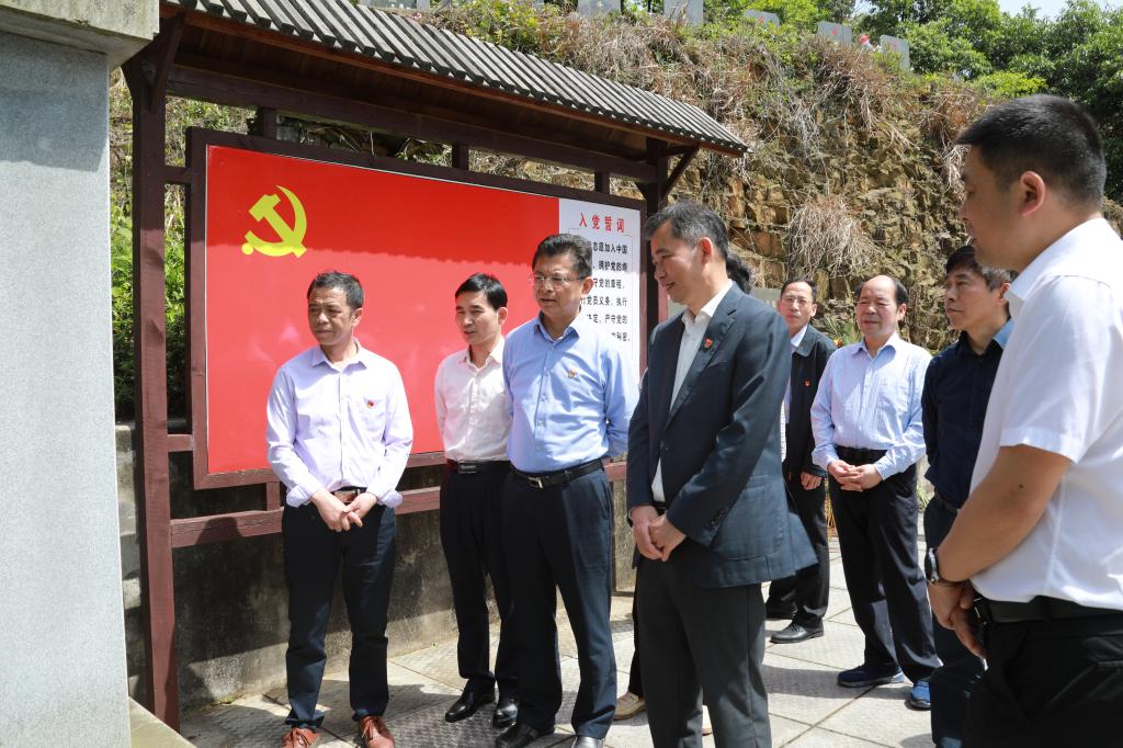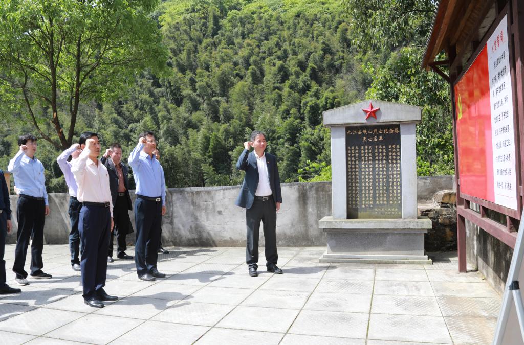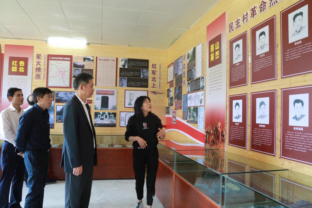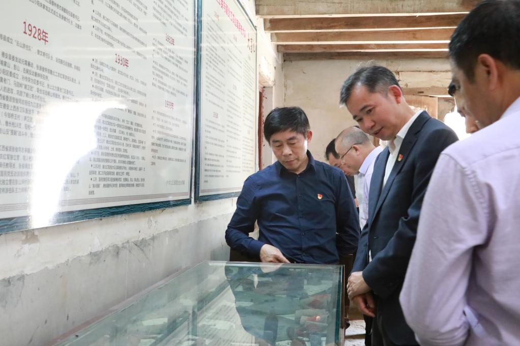 随后,他们前往金盘村洼里陈的中共赣北工委与红军游击大队旧址和红军馆,接受理想信念教育。在革命烈士留下的遗物前,金盘村村委书记介绍了当年赣北游击队的故事,一幅幅图片、一段段文字记载再现了当年革命先烈们艰苦卓绝的斗争,林修杰、欧阳学端等烈士的事迹更是感人肺腑、催人泪下,让每一位班子成员都深受感动。