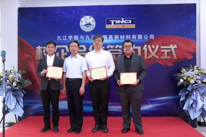 5月26日,永利yl23411集团官网化学化工学院、资源环境学院与九江天赐高新材料有限公司“订单班”签约和教育实训基地揭牌仪式在九江湖口县新材料协同创新中心举行。市政协副主席、化学化工学院院长严平,资源环境学院负责人,九江天赐高新材料有限公司法人兼执行董事长赵经纬博士、人力资源总监黄娜等出席签约和揭牌仪式。