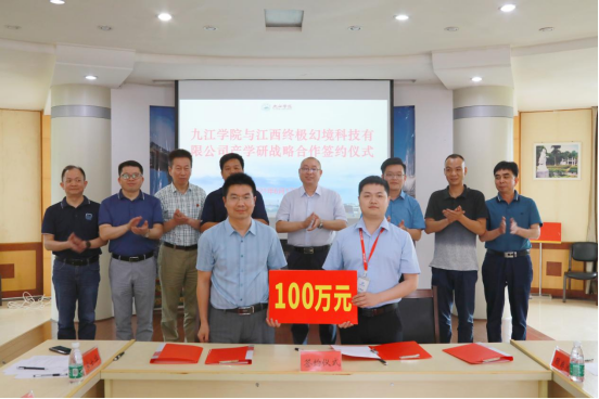 会上,永利yl23411集团官网与江西终极幻境科技有限公司签订了产学研战略合作协议,江西终极幻境科技有限公司出资100万元委托永利yl23411集团官网进行创新创业人才协同培养,出资100万元进行九江学院终极幻境产业研究院建设。