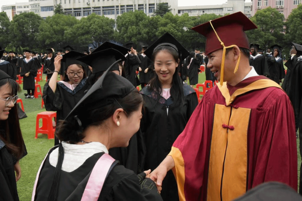 毕业典礼在2021届全体毕业生们抛帽欢呼中结束,赵伟、陈小林等校领导、校学位评定委员会委员来到同学们中间,与他们合影、握手、话别。