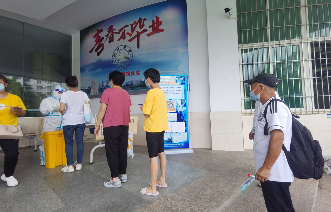 秋季开学在即,为积极响应江西省疫情防控工作部署安排,落实市疫情防控指挥部《关于强化新冠病毒核酸检测筛查工作的通知》关于重点行业人群“应检尽检”工作要求,做好校园的疫情防控工作,8月26日,永利yl23411集团官网组织全体后勤管理处职工进行第一轮新冠病毒核酸采样、检测。校长陈小林、副校长杨耀防等校疫情防控小组领导亲临现场指导。