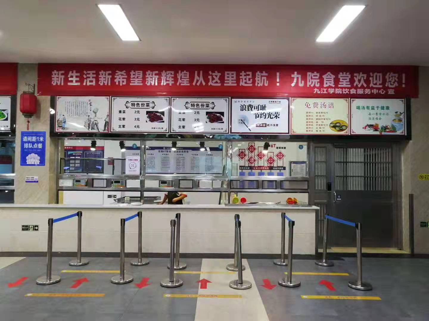 “浓情烹调校园百味喜迎八方学子,奋斗谱写奉献之歌服务四方英才”、“质优价廉菜品多 健康饮食牵你我,九院餐厅献真爱 膳食营养美味传”,在各学生食堂悬挂的横幅让人倍感温馨,每条幅都表达后勤人对2021级新生的热情。在各食堂均有免费提供的冰绿豆汤、银耳汤和免费茶水等服务,针对部分新生未及时购买饭卡,后勤管理处分别在学生一食堂、学生三食堂、浔东校区学生食堂分设临时快餐售卖点,支持微信、支付宝支付,延伸服务触角,使新生真切的感知到学校的“温度”。