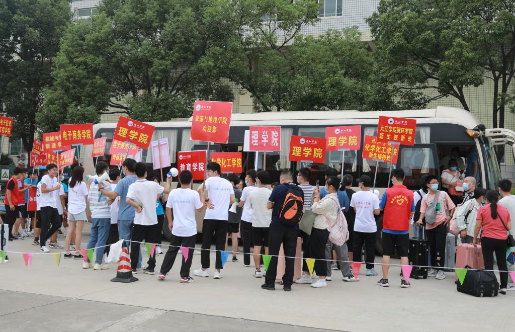 “经管学院的到这边”“体育学院的跟我来”.......在北区田径馆外,伴随着接送新生大巴的到来,各二级学院的志愿者们举着牌子,满面笑容,热情地招呼着刚刚到来的新生们,帮助他们搬运行李,前往各二级学院报到点办理入学手续。“非常高兴迎来了新的学弟学妹,他们的到来为学校注入了新的活力,希望我们的服务能让他们感受到学长学姐的热情”教育学院A2021班志愿者李思雨高兴地说。来自建工学院A2013的志愿者刘瑞兴一边引导新生一边告诉记者。“去年,我们作为新生被热情接待。今年,我们作为志愿者迎接新生,一年又一年,传承的是一种九院精神。”