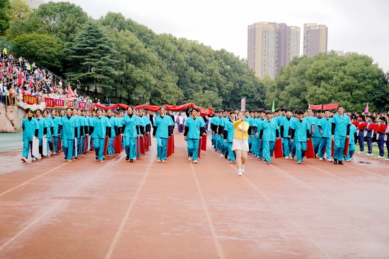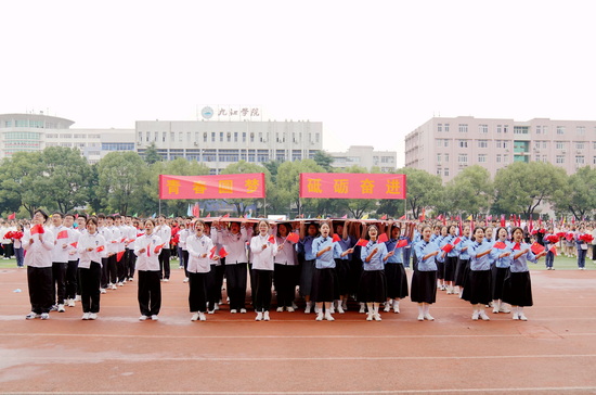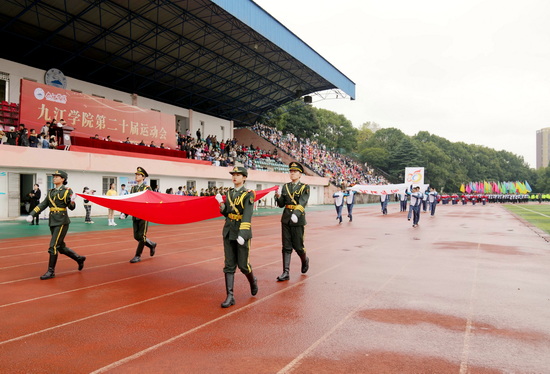 在运动员代表、裁判员代表宣誓后,校党委书记赵伟宣布:九江学院第二十届运动会开幕!