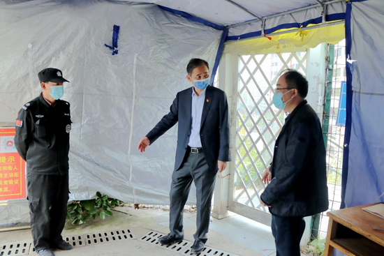 在濂溪宾馆临时隔离观察点,赵伟详细了解了隔离观察人员情况,叮嘱工作人员要关心、关怀临时隔离观察人员的心理健康,帮助他们消除紧张情绪,做好隔离观察期间的生活保障。
