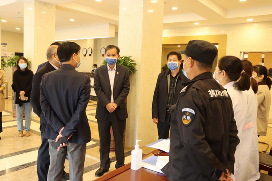 赵伟、陈小林一行还来到大学科技园、校工会、匡庐苑入口等疫情防控工作重点部位实地查看疫情防控工作的落实情况。