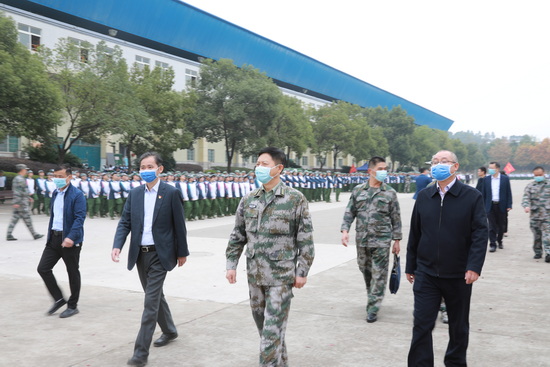 11月2日上午,九江军分区司令员丁庆顺来校看望正在军训的九江学院2021级新生,党委书记赵伟、校长陈小林热情接待了丁庆顺司令员一行。