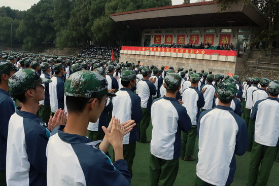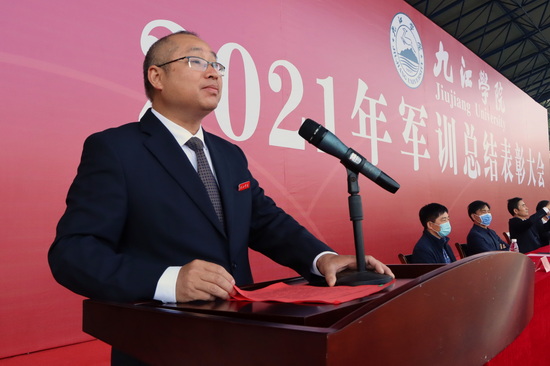 陈小林校长在致辞时指出,同学们高昂的士气、铿锵的口号、矫健的步伐和整齐的队列,充分展示了本次军训的成果。他代表学校向获得军训会操和内务评比优胜的单位表示祝贺,向九江军分区全体教官和学校退役复学的学生教官表示感谢。