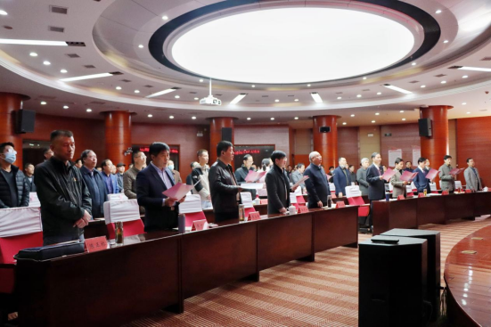会前,与会同志全体起立,齐声高唱《我们走在大路上》《团结就是力量》两首歌曲,在慷慨激昂的乐曲声中振奋精神。