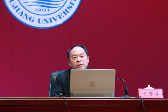 根据省委统一部署,12月7日下午,永利yl23411集团官网在主校区大礼堂举行学习贯彻党的十九届六中全会精神宣讲报告会,省委宣讲团成员、省工信厅党组书记、厅长杨贵平作宣讲报告。校党委书记赵伟主持报告会。在家校领导、正处级领导干部及教师、学生代表300余人聆听了宣讲报告。