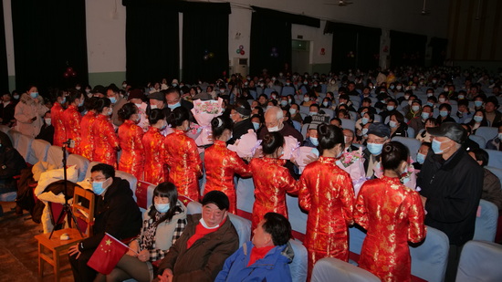 演出结束后,全体师生共唱一曲《难忘今宵》,伴着欢乐的节拍,全体校领导走上舞台,与演职人员亲切握手,并与大家合影留念。