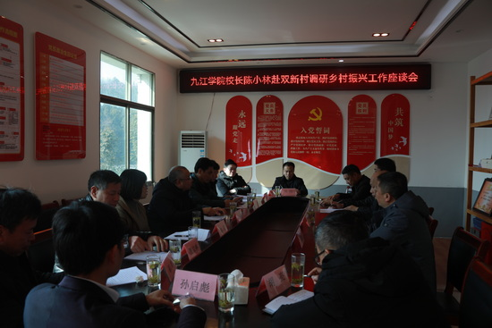 随后,陈小林一行在双新村村委会参加了双新村乡村振兴座谈会。会上,武宁县副县长卢恒墀对陈小林一行的到来表示热烈欢迎,对九江学院对双新村的帮扶表示感谢,表示期盼在九江学院的帮扶下和各方的努力下,双新村能发生一个新的变化。