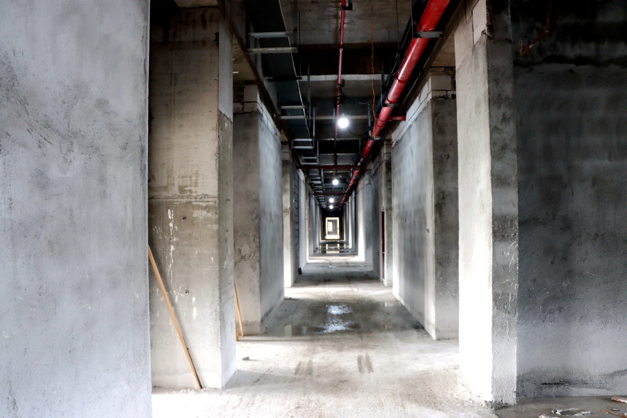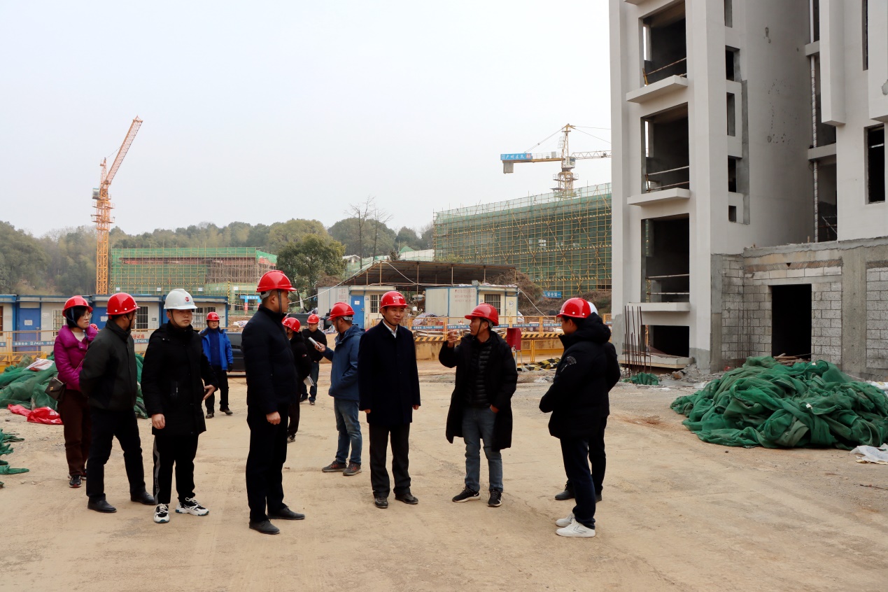 赵伟一行先后实地查看了医创中心、学生宿舍、时光隧道、芙蓉小镇、研究生院及行政楼等项目建设情况,现场办公,落实、解决调度过程中发现的问题。