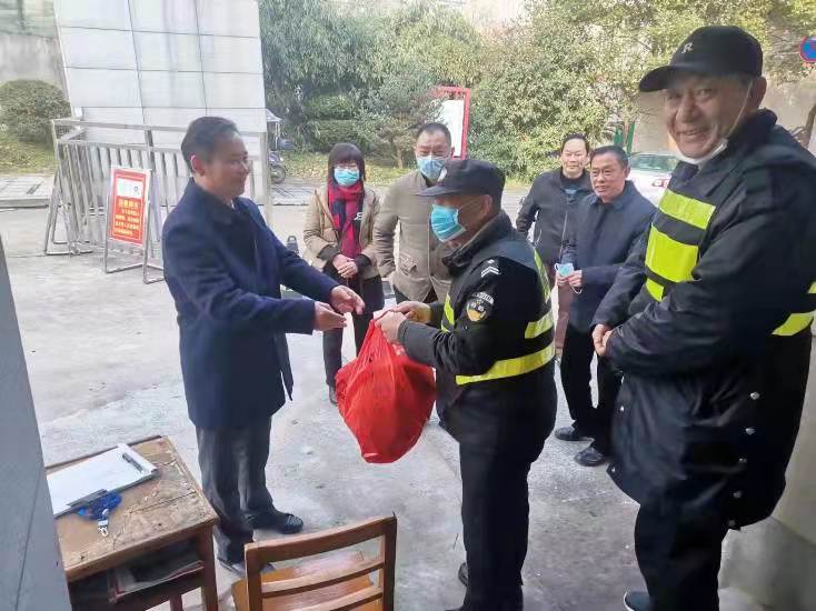 赵伟先后来到浔东校区大门值守点、校区视频监控中心,为坚守工作岗位的干部职工送去了慰问品,详细了解当前校区安全保卫和供电、供水等保障情况,希望大家一如既往恪尽职守,以高度的责任心和饱满的工作热情,做好春节期间校园疫情防控工作,全力以赴维护好校园的平安稳定。他称赞坚守岗位职工爱校敬业的奉献精神,并向他们送上诚挚的新春祝福。