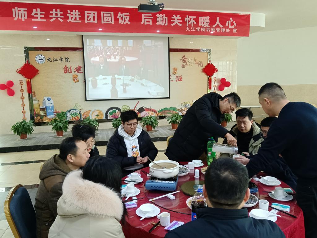 据了解,永利yl23411集团官网中、高风险地学生积极响应国家疫情防控需要,选择留校过年。尽管留校学生人数从最初的二十几人到除夕留在学校的只有四名同学,学校仍然非常重视,校党委赵伟书记要求各部门必须保障好留校学生能在九江学院过好这个春节,并于元月29日亲自到学生三食堂视察了后勤处为留校学生难备年夜饭的情况。除夕中午,万家团圆之际,为了让远在他乡的留校学生感受到学校的关怀和家一样的温暖,后勤管理处按照学极党委、行政的指示,精心准备了一顿团圆饭与留校学生共度虎年新春。事前饮食服务中心与学生多方沟通,将按照学生的家乡口味结合九江地域特色,专门制作一顿热勝腾地有情感的年夜饭。