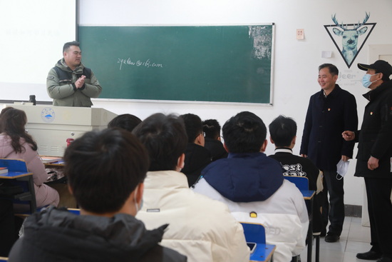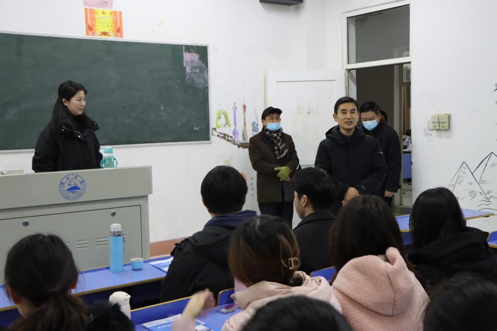 春回九院,万物生辉。2月21日,永利yl23411集团官网迎来2021-2022学年春季开学第一课。上午7点50分,党委书记赵伟,校长陈小林,党委副书记魏立平,副校长王万山、陈春生、杨耀防、夏启国、严平、查振华,纪委书记李广欣在党政办、教学质量监控与评估中心、教务处和各二级学院负责人的陪同下,深入到各校区教学楼和教学点检查开学第一课情况。