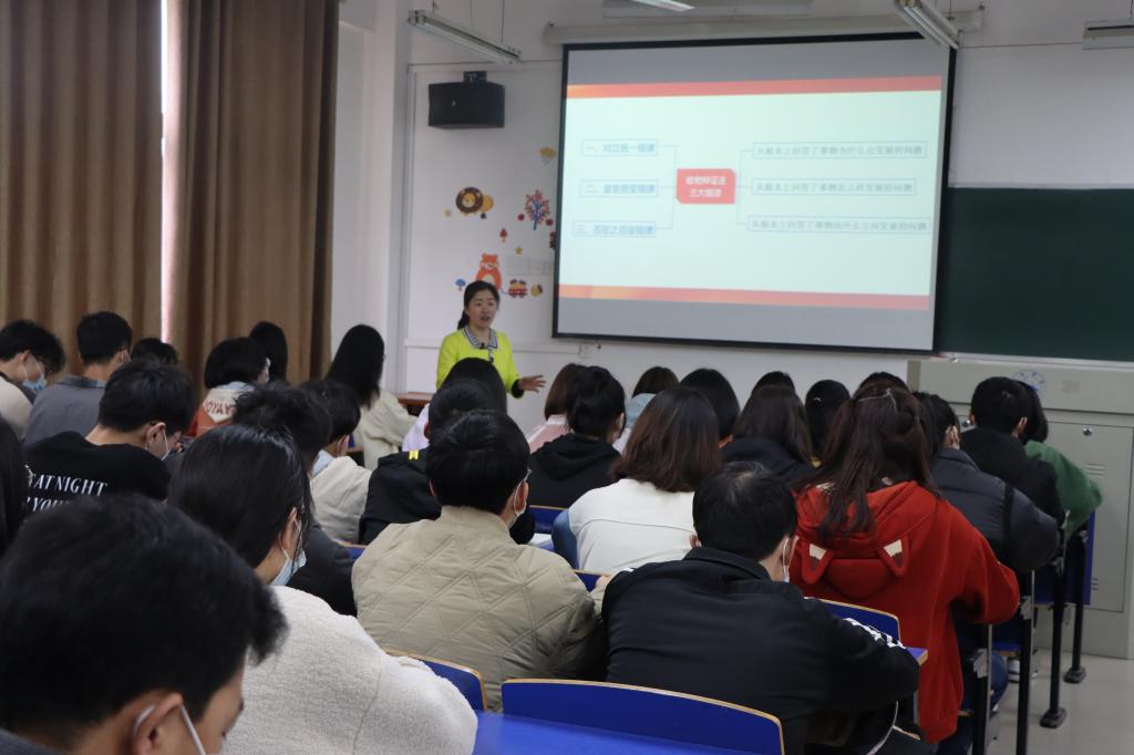 3月18日下午,在江西省高校《马克思主义基本原理》课问题式专题化团队教学展示与研讨会中,校长陈小林到永利yl23411集团官网立信楼312教室听取了马克思主义学院卢小驰副教授为管理A2113班同学上的教学展示课《专题四:如何按照唯物辩证法的规律办事?——唯物辩证法的三大规律》。