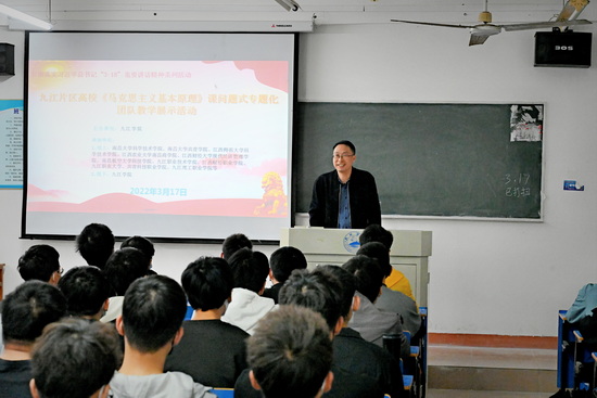 “九江学院马克思主义学院将进一步深化‘问题式专题化团队教学’改革,与兄弟院校马克思主义学院共同努力推进思政课教学改革创新,更好地贯彻落实习近平总书记对思政课教师提出的使命和要求。”马克思主义学院院长陈胜才表示。