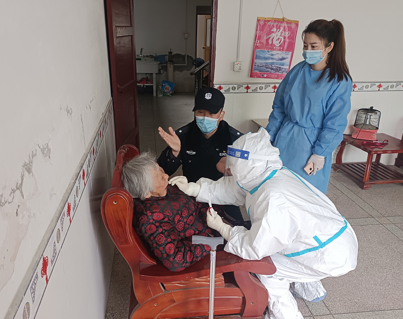 抗疫期间,杨月军忙着带着医护人员走村串户给行动不便的老人上门检测。同时,他还时刻牵挂村里的产业发展,一有空隙便去黄桃基地巡查桃树长势,看到盛开的桃花,他便随手拍一张发给执勤中的妻子说“待疫情散去,约看桃花盛开。”