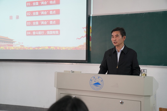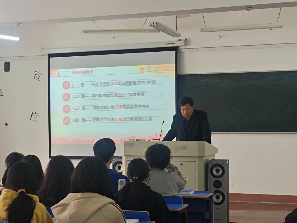 据了解,每学期由校领导和二级学院的领导为学生上思政课,已成为永利yl23411集团官网落实立德树人根本任务的一项优良传统,是学校加强大学生思想政治教育的一项重要举措,收获了同学们的一致好评。本次校领导聚焦“两会”精神进行专题授课,引导同学们进一步深入学习领会全国“两会”精神,把思想和行动统一到中央的部署要求上来,是永利yl23411集团官网深入贯彻落实“两会”精神、加强思想政治工作的一项重要举措。