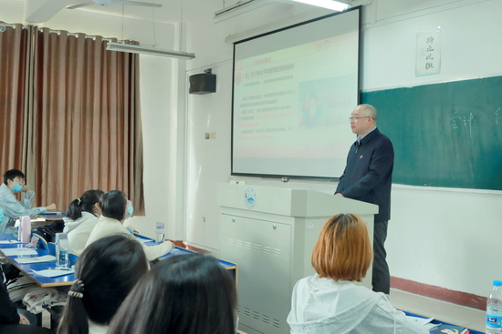 在立信楼307教室,陈小林为管理学院A2132班学生授课。他充分结合审计专业特点,引用大量生动案例,紧紧围绕全国“两会”的“特点”“看点”“要点”,深入浅出地向广大学生传达“两会”精神。引导同学们深刻认识全国“两会”期间习近平总书记作出的“五个必由之路”重大论断和“五个战略性有利条件”。他指出,学习“两会”精神,重点在于领会、实践。