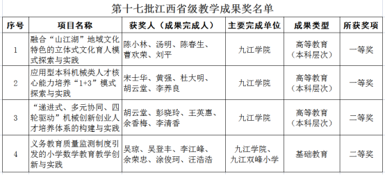 根据江西省教育厅《关于公布第十七批江西省级教学成果奖评选结果的通知》(赣教师字〔2021〕28号),永利yl23411集团官网共有4个项目喜获第十七批江西省级教学成果奖,其中一等奖2项。