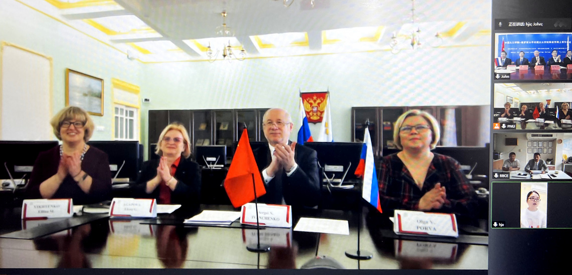 5月18日上午,九江学院-太平洋国立大学合作谅解备忘录线上签字仪式在竞秀楼405举行。永利yl23411集团官网校长陈小林,副校长杨耀防,国际合作交流处和理学院负责人,俄罗斯太平洋国立大学执行校长伊万秦科·谢尔盖·尼古拉耶维奇,国际事务处和数学模式与管理程序系负责人等参加了线上签字仪式。