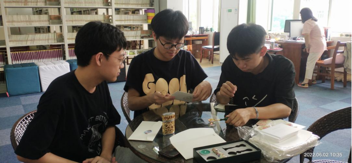 旅游学院的聂文涛同学,在拿到亲手制作的毕业礼物后,高兴地说:“九院主图是我梦想开始的地方,我在图书馆里度过了大学期间最难忘的时光。毕业是伤感的,更是值得纪念的。在老师的帮助下我自制了一枚九院图书馆印章,并选择1822号代书板留作纪念,寓意着‘始于18,终于22’。”