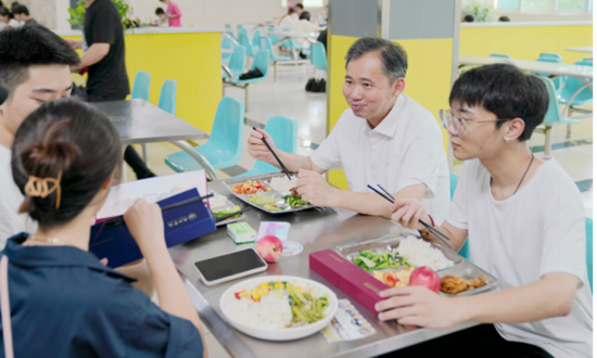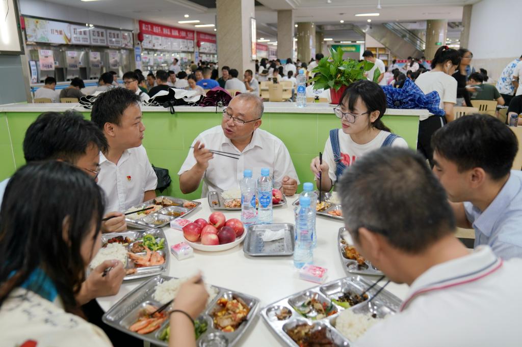校党委书记赵伟,校长陈小林,党委副书记魏立平,副校长王万山、陈春生、查振华,校纪委书记李广欣在校校领导先后来到学生三食堂、学生一食堂和毕业的同学们一起就餐,面对面交谈,鼓励大家在人生新起点上勇于开拓,创造精彩人生,不负韶华、不负时代,期望大家在人生的道路上越走越远,也欢迎常回家看看。