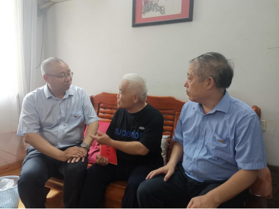 6月30日上午,校党委副书记魏立平走访看望原九江医专党委书记、“光荣在党50年”老党员徐良田,并颁发纪念章。魏立平向老人送上节日祝福,祝愿他健康长寿、阖家幸福。随后,魏立平来到困难党员曹开财的家中看望慰问,送上节日的祝福,关切询问家里子女晚辈的工作生活情况,叮嘱相关部门要多关心困难党员,认真倾听诉求,及时帮助解决困难和问题。