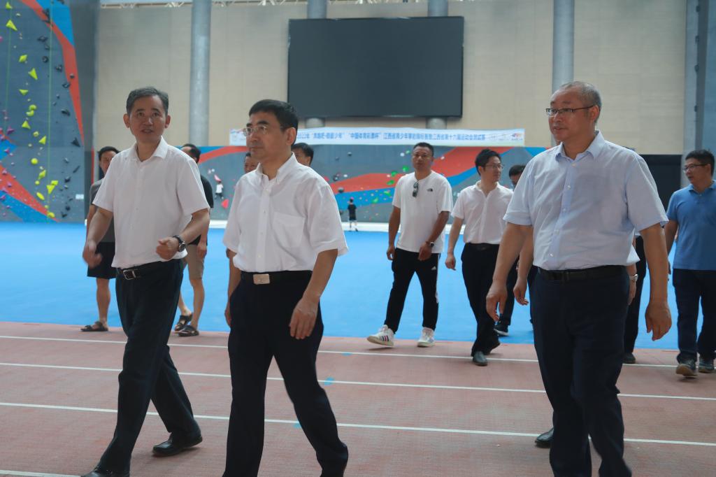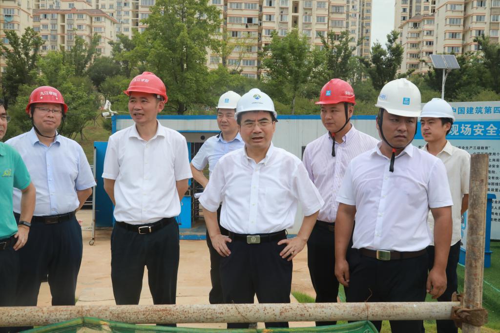 7月21日上午,九江市委副书记蒋文定来校调研指导省运会场馆建设,校党委书记赵伟、校长陈小林、副校长夏启国陪同。
