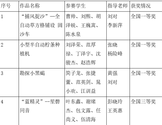 全国大学生机械创新设计大赛是教育部认可的57项全国性大学生竞赛项目之一,是国内最具影响力、培养学生工程实践能力和综合素质效果显著的大学生竞赛项目之一。全国的123所高校的200项作品入围决赛,全国50多位知名教授级专家参与大赛评审。永利yl23411集团官网学子获得了全国一等奖3项、三等奖1项,获一等奖数量仅次于西安交通大学、武汉理工大学、东北大学、上海交通大学、浙江工业大学,居全国高校排名第六,这是此项赛事以来永利yl23411集团官网学子取得的最好成绩。