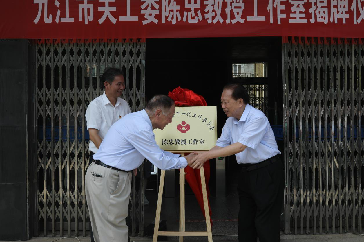 在中秋节、教师节双节来临之际,9月9日上午,九江市关工委“陈忠教授工作室”揭牌仪式在永利yl23411集团官网浔东校区图书馆前广场举行,九江市关工委主任史之汉和永利yl23411集团官网党委书记赵伟共同为“陈忠教授工作室”揭牌。