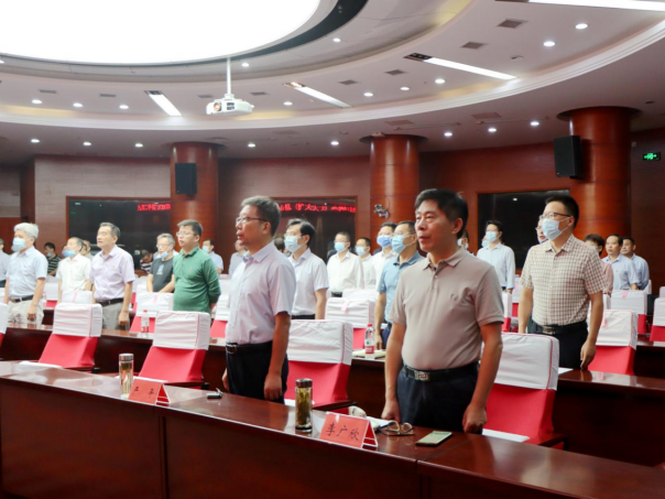 会前,与会人员全体起立,高唱《团结就是力量》《没有共产党就没有新中国》两首红歌。