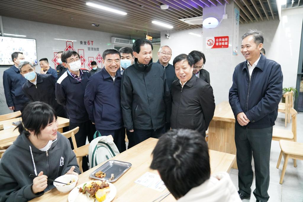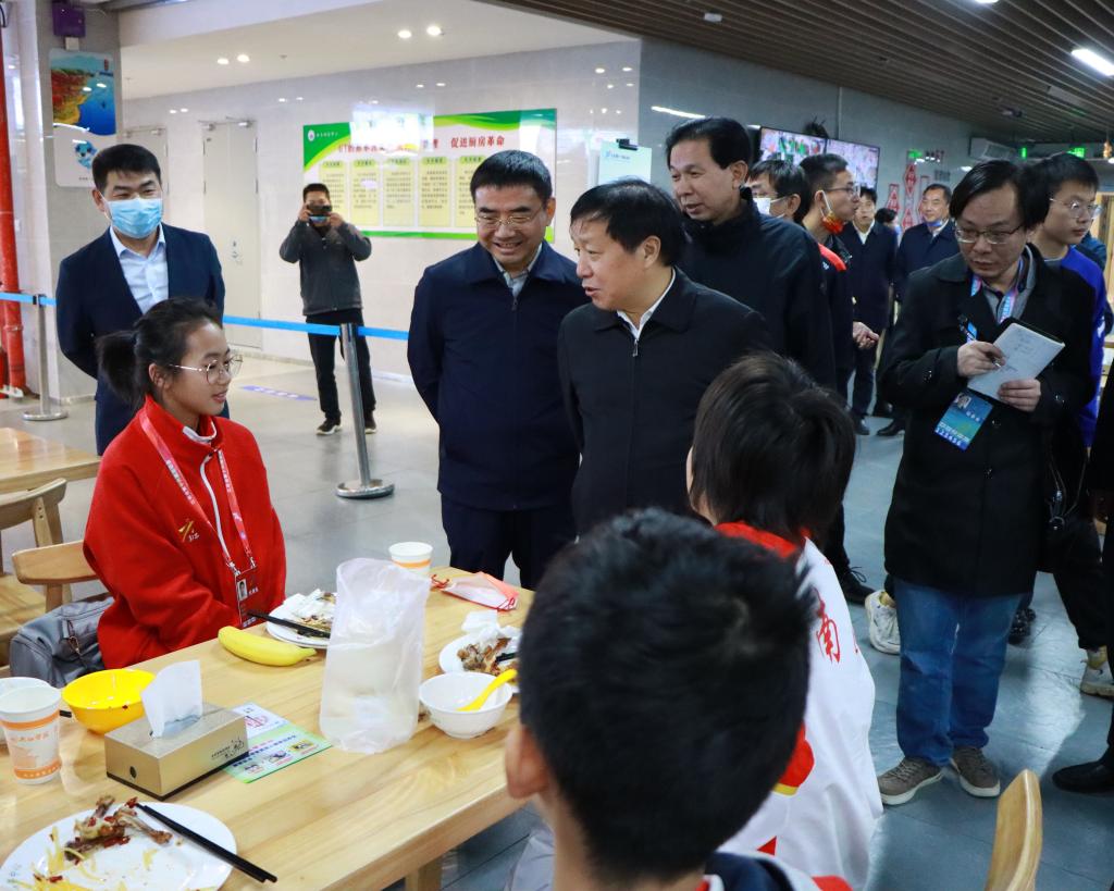 孙菊生一行深入到运动员食堂进行现场查看,了解运动员的饮食情况。“饭菜味道怎么样?吃得惯吗?”在运动员食堂,孙菊生一行与就餐的运动员亲切交谈。孙菊生对省运会运动员饮食保障和供应表示了充分肯定,希望九江学院饮食服务中心借助服务省运会契机,全面提升饮食服务水平。