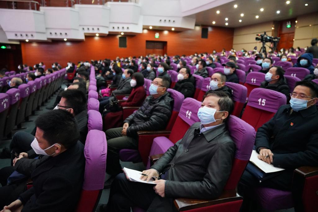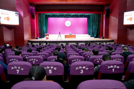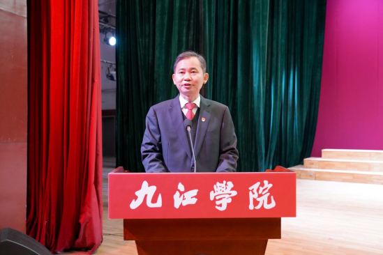 校党委书记赵伟主持报告会,省发改委办公室主任邓宇翔、省发改委国民经济综合处处长曾铭、九江市发改委党组书记、主任于先葵、学校全体领导班子成员、师生代表300余人在主会场共同聆听了报告。各基层党委(党总支)理论中心组成员、师生党员以线上方式聆听了宣讲报告。