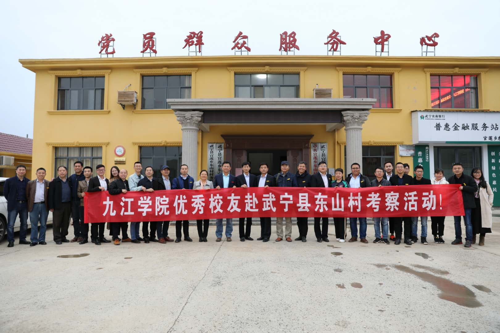 乡党委书记刘东昌、乡长张来到九江学院赠送锦旗